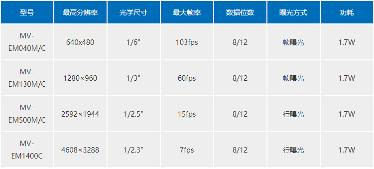 MV-EM系列工业相机为维视推出的小尺寸以太网工业相机,该系列相机覆盖30万~1400万像素,采用更加稳定和通用的千兆以太网络进行传输,相机设计小巧,功耗低,具有图像质量清晰、稳定等特点,配套多种主流语言开发包及例程,同时支持第三方图像处理软件直接调用,支持外触发输入控制采集及信号输出,具有极高的性价比,广泛应用于制造业品质控制、高精度测量、智能交通系统、医学和生命科学影像、教育和科研等领域,是您机器视觉图像获取及设备集成的理想之选。