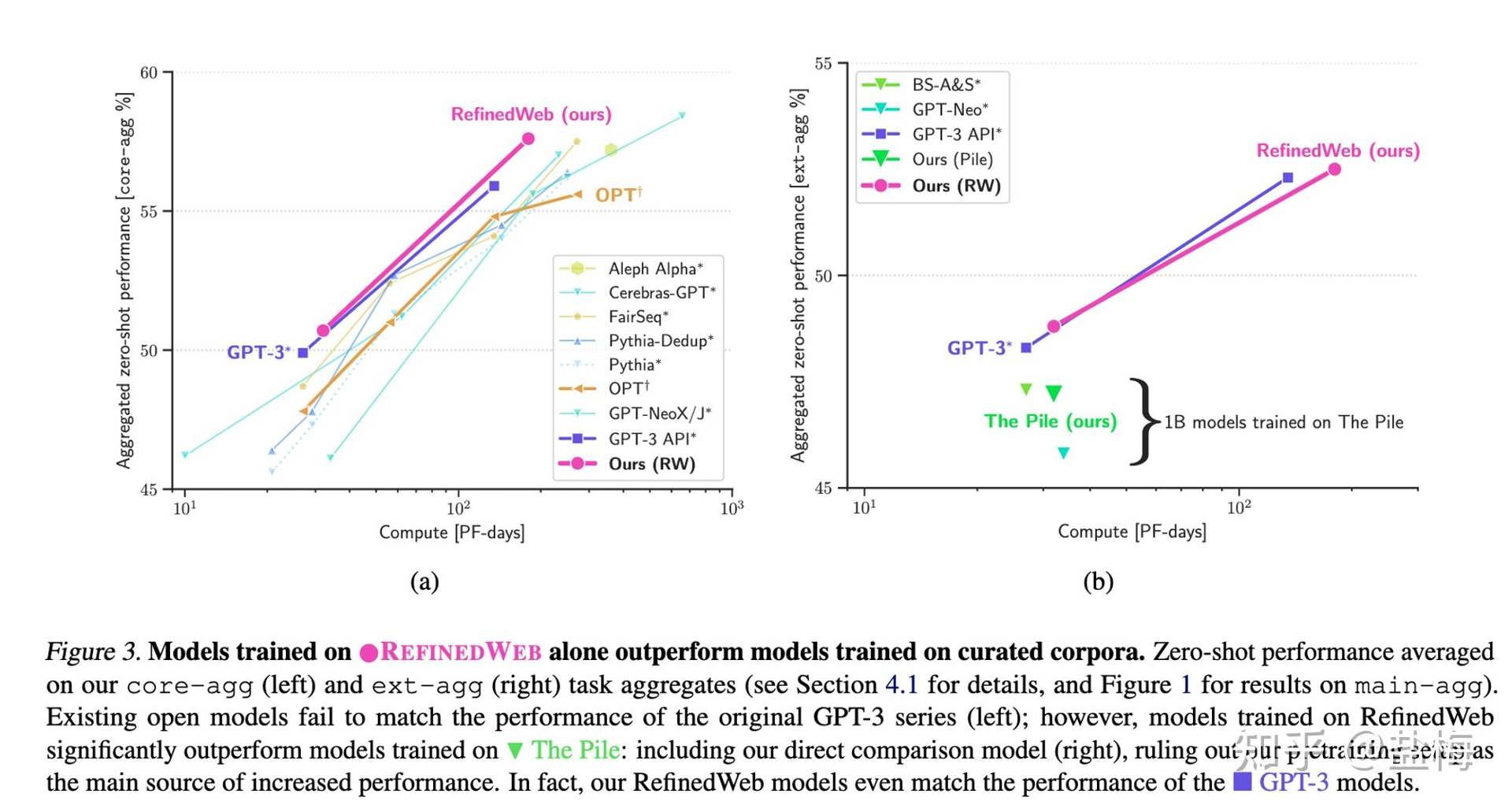 The pile是一个高质量数据集,作者在构建的RefinedWeb数据集上训练模型超过了在The pile数据集上训练的效果
