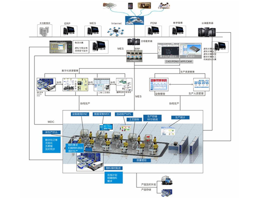 数字化车间解决方案是数字化、网格化技术在生产车间的综合运用,将数控设备与工艺设计系统、生产组织系统和其他管理系统的信息进行集成,形成综合信息流自动化的集成制造系统。解决车间布局规划从整体上改善生产的组织与管理,提高制造系统柔性和数字化设备效率。