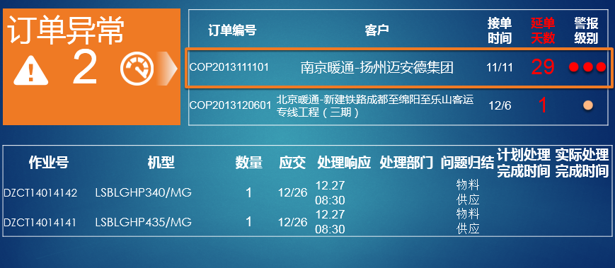 对异构件处理情况进行追踪,包括采购件、外协件和自制件。看板中的异构件必须在规定时间内按规定数量进行入库处理操作。具有考核采购供应商、外协供应商、自制车间的及时供货绩效功能,还可对未按时入库进行异常预警。